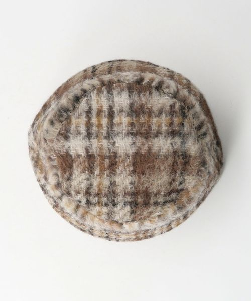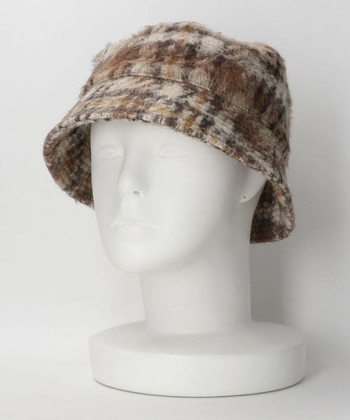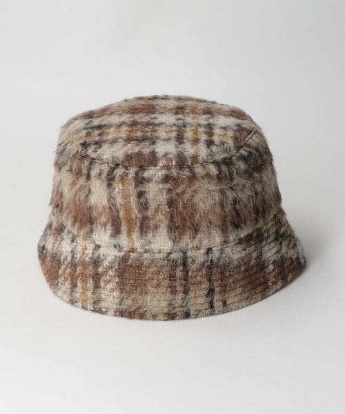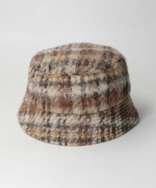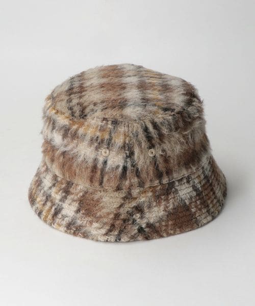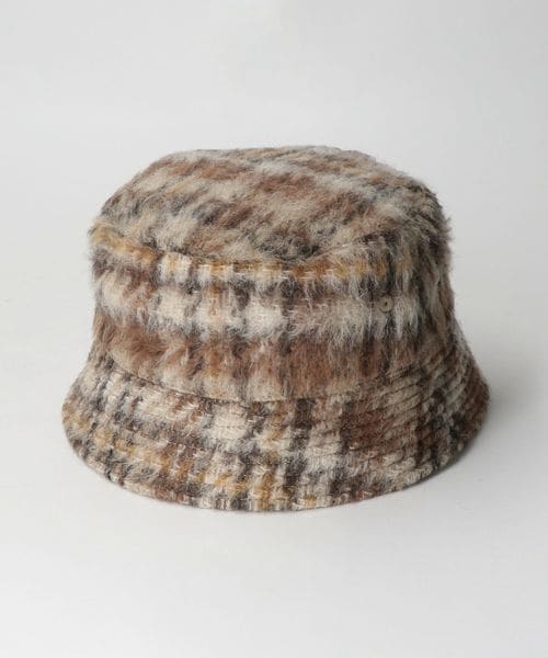 ヘアリーな風合いに大ぶりの柄目とカラー配色が美しいバケットハット。