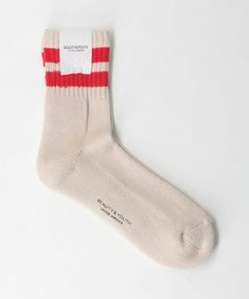 フットイン部分をライン入りのリブ仕立てにしたソックス。
