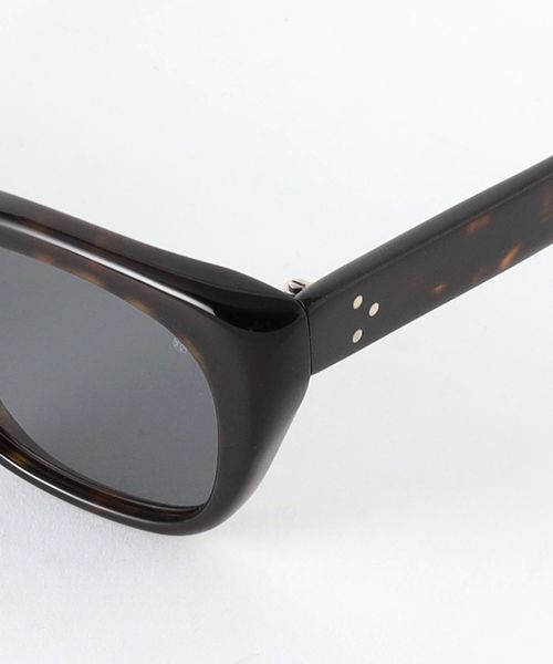 シンプルなブラックフレームに薄めのライトネイビーのレンズで仕立てたブラックカラーと、カジュアルなデミ柄に薄めのチャコールグレーで仕立てたダークブラウンカラーの2型展開です。