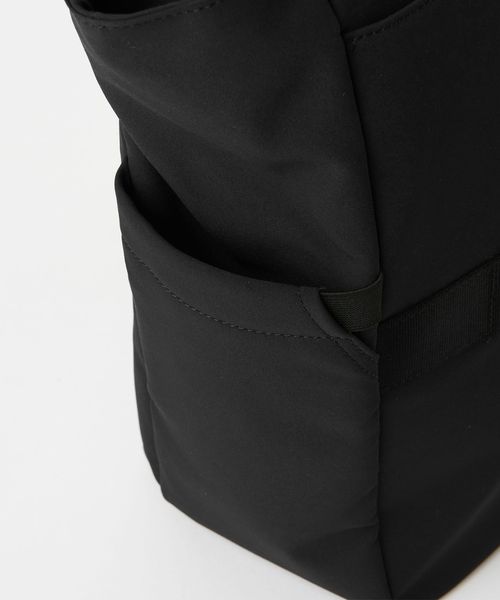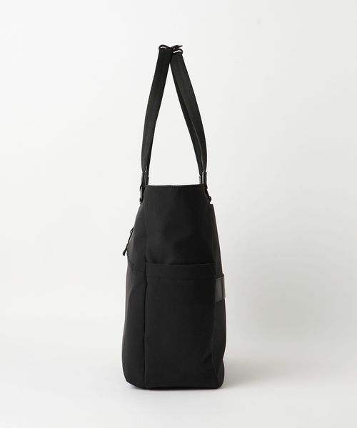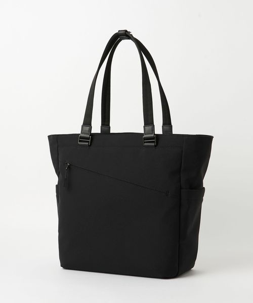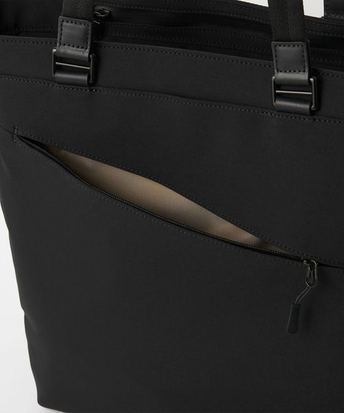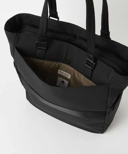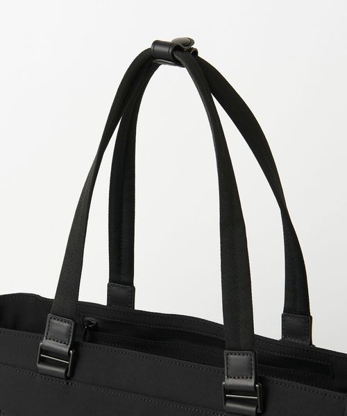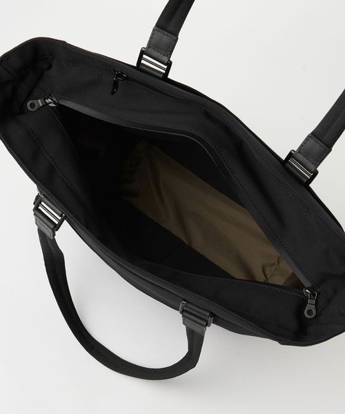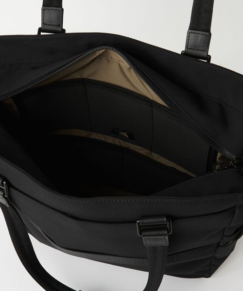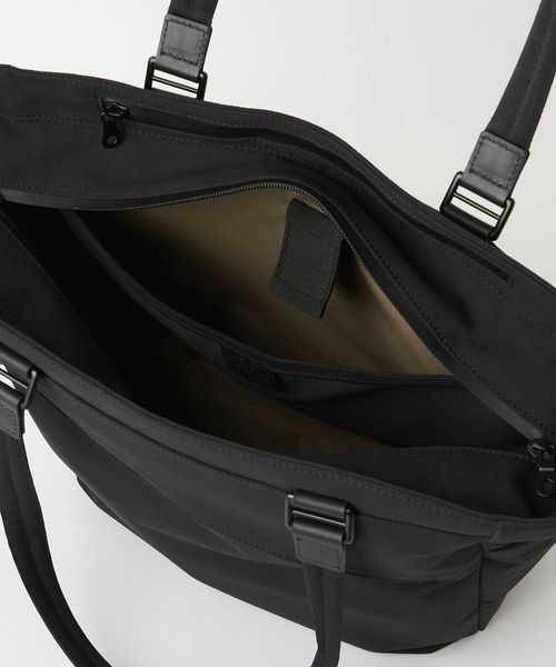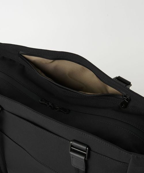 ブラックで統一したミニマルなボディに、拘りの機能美が映えるトートバッグです。