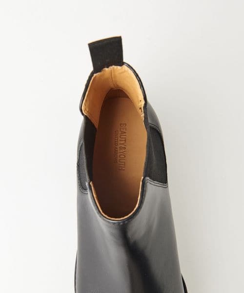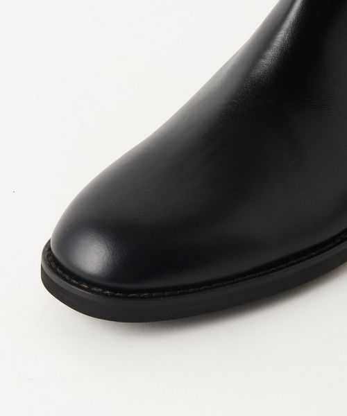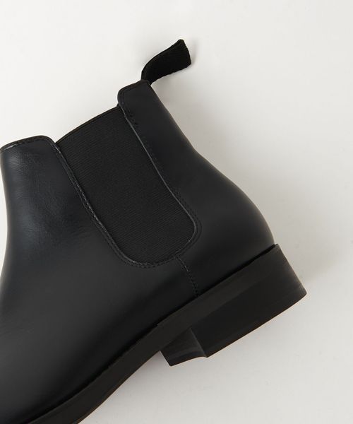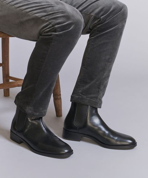 スタイル全体を引き立てるシャープで都会的なレザーブーツ。
