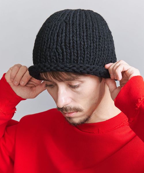 凹凸感のある幅広でざっくりとした編地が特徴のニットキャップ。