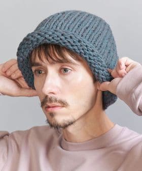 凹凸感のある幅広でざっくりとした編地が特徴のニットキャップ。