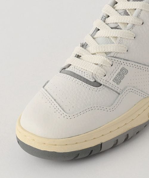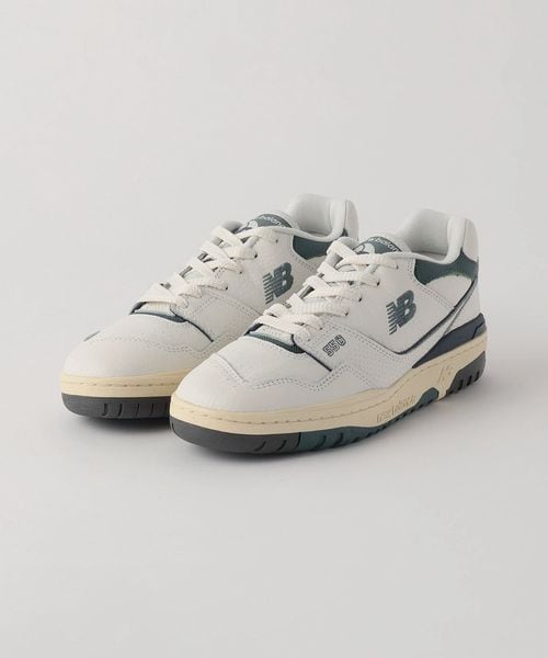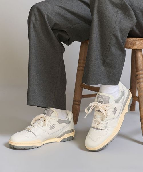 フライング「NB」ロゴが特徴的なこのモデルは、従来の「550」に新たなデザインを加え、レトロ感のある一足の仕上がり。
