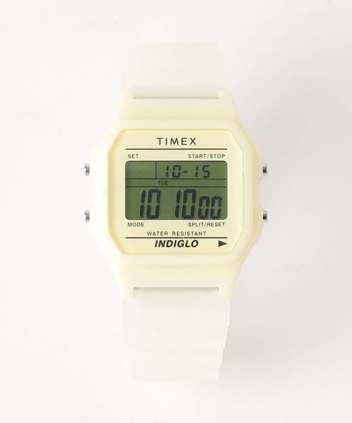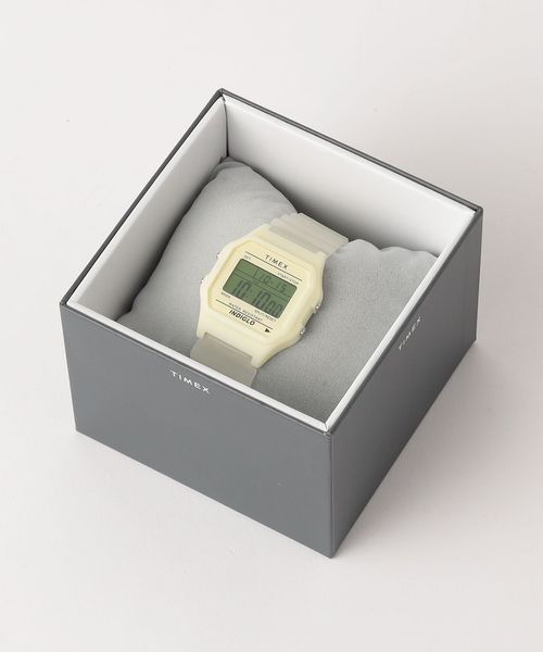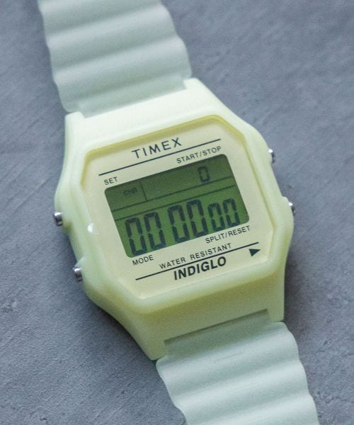 1980年代にデザインされたデジタルウォッチ「TIMEX 80(タイメックス エイティ)」をベースに、明るいところで蓄光し暗所で蛍のように発光する、蓄光素材をケースやストラップなど全体に採用した復刻モデル。