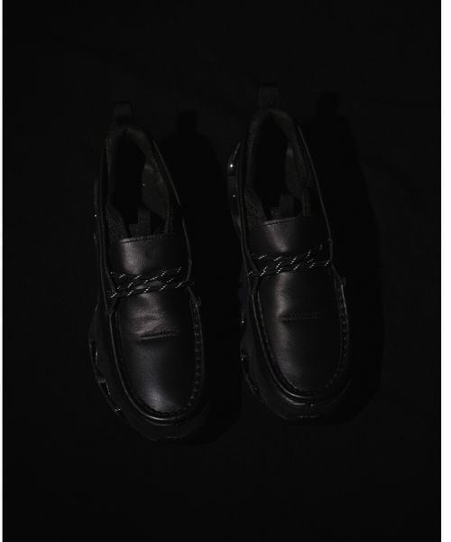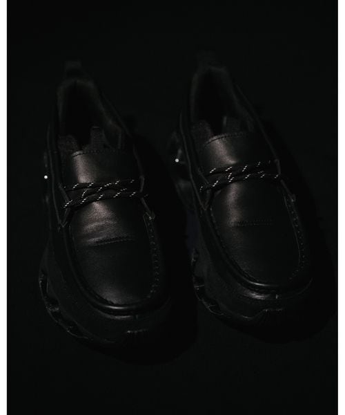 デザイン面では、従来のモカシンシューズのアッパーデザインを踏襲させるために履口を広くとり、シューレースを前足部へ配置。