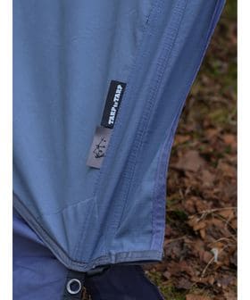 夜明けのブルーモーメントの都会をイメージした青味が混ざった絶妙なグレイカラーは自然とも都会とも調和の取れる今までのテントにはないような色目に仕上がりました。
