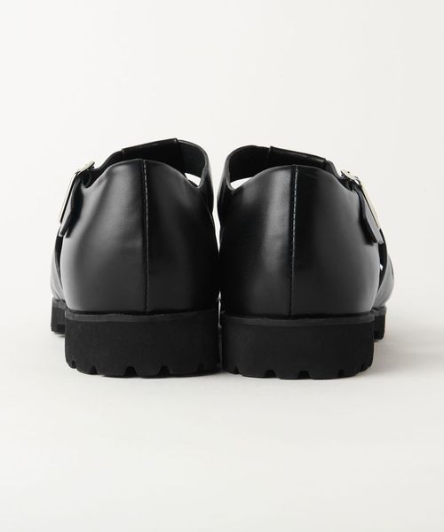 アッパー部分にブラックは滑らかなスムース素材(合成皮革)を使用。