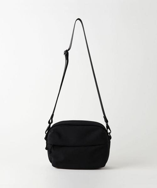 ブラックで統一したシンプルなボディに、拘りの機能美を施したモダンテイストのミニショルダーバッグです。