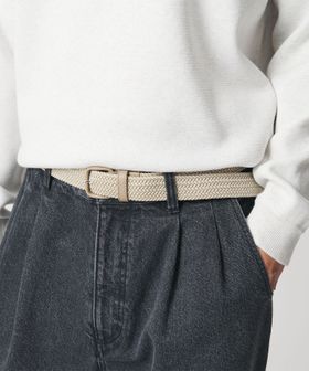 表情豊かな編み込みに同色レザーパーツをあしらった、洗練された雰囲気のメッシュベルト。
