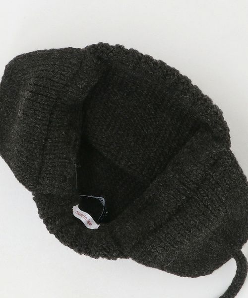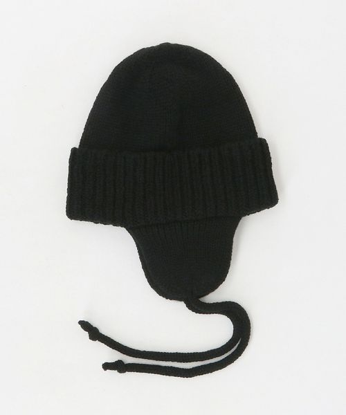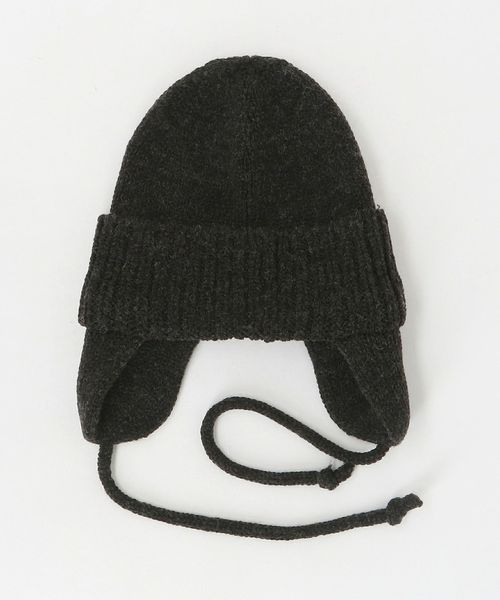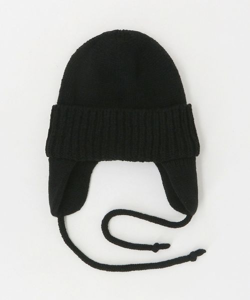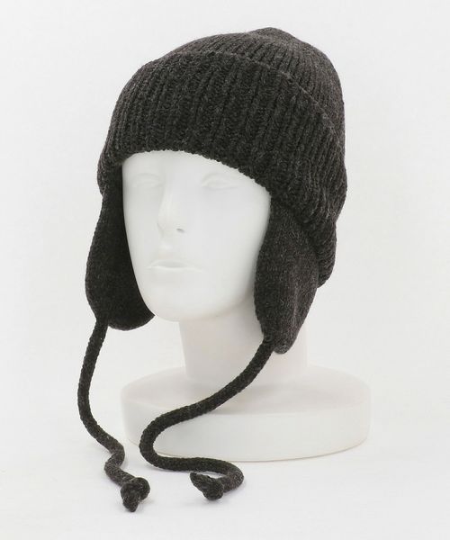 耳当ての先の紐は、垂らしてアクセントにするだけでなく、頭の上で結んでフライトキャップ風にアレンジも可能。