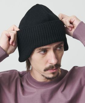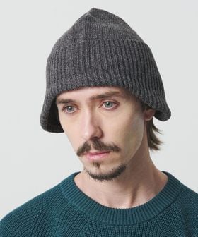 両サイドが少し下に伸びたユニークなシルエットが印象的なワッチキャップ。