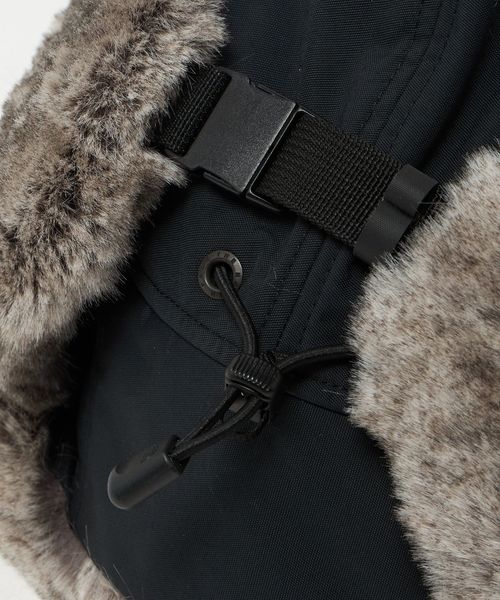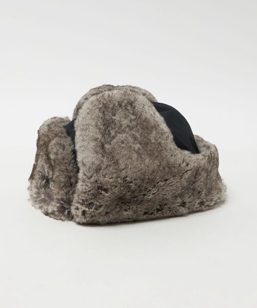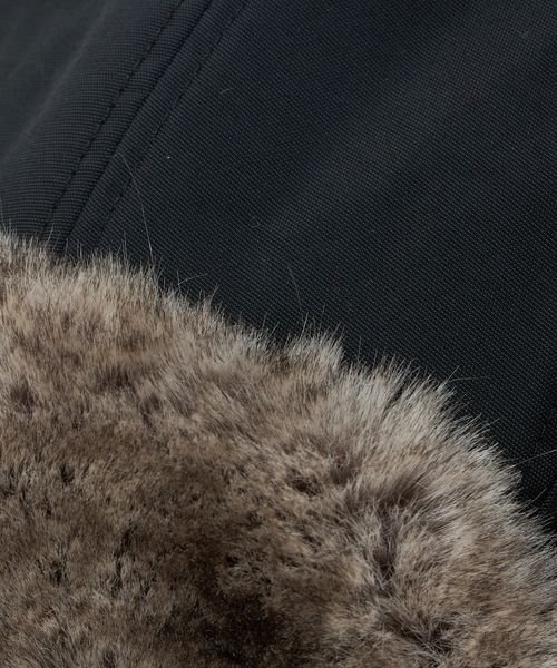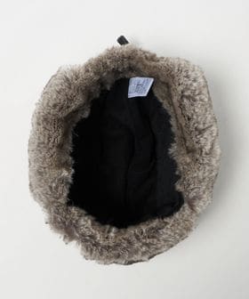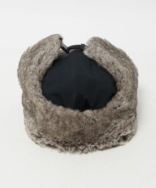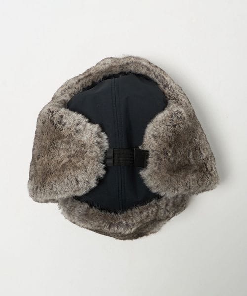 つば裏と耳当て部分のポリエステル素材のファーは、リアルファーのような色合いと肌触り。