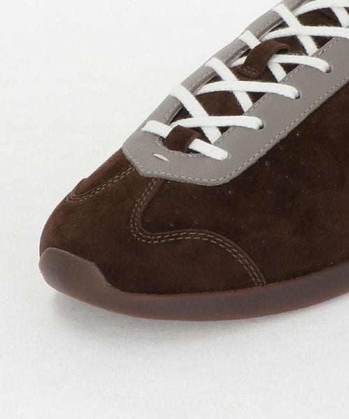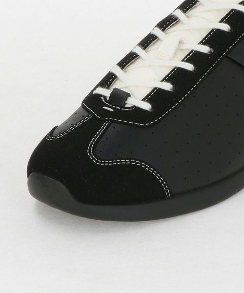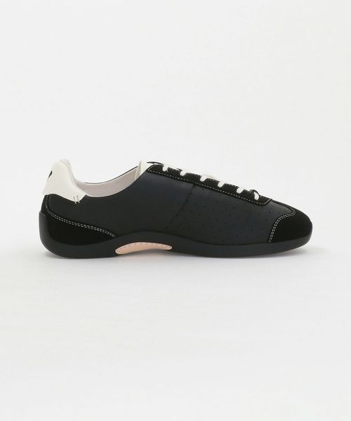 上質なレザーのアッパーにパンチングを効かせ、上品さとスポーティなムードを演出。