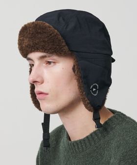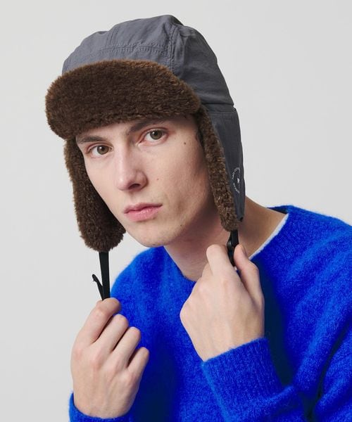 ナチュラルな風合いのナイロンとポリエステル製ボアを組み合わせたフライトキャップ。