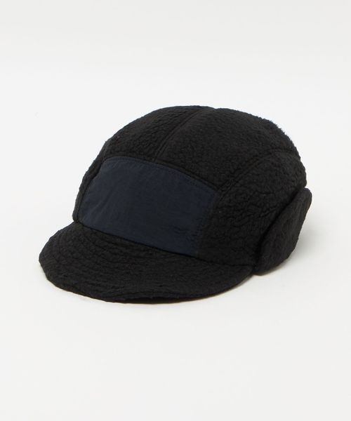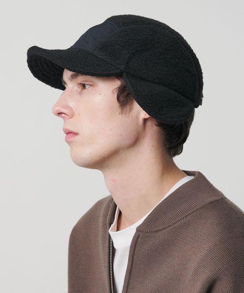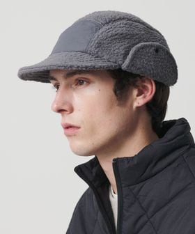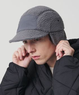 肌触りの良いボア素材をふんだんにあしらった耳当て付きキャップ。