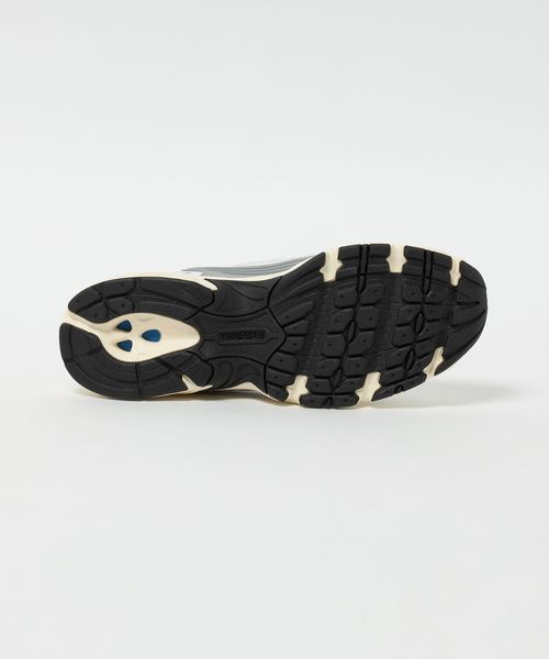 メッシュアッパーに異素材のオーバーレイを重ねることで、どこかレトロフューチャーな雰囲気に仕上げています。