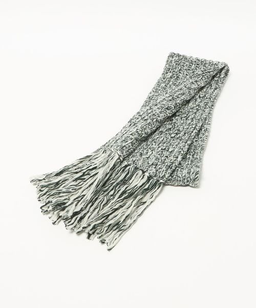 ウールにカシミヤをブレンドした太番手糸を贅沢に使い、空気を含むようにざっくりと編み立てたリブマフラーです。