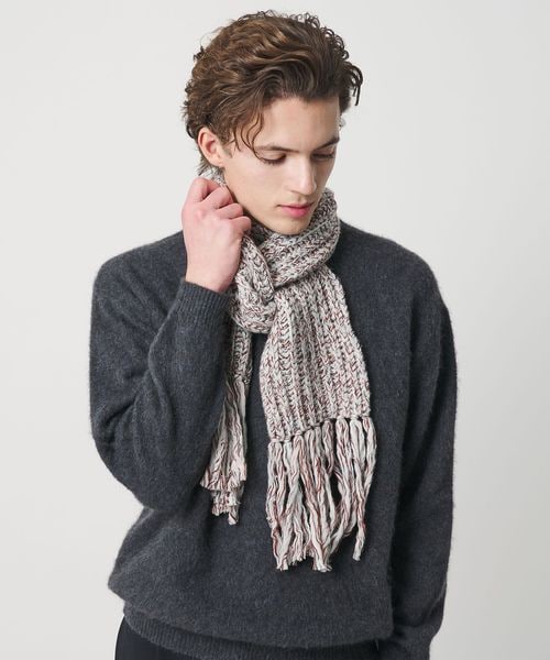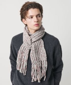 ウールにカシミヤをブレンドした太番手糸を贅沢に使い、空気を含むようにざっくりと編み立てたリブマフラーです。
