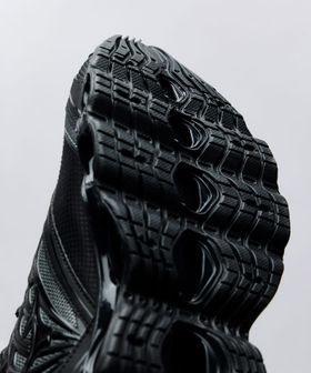 タフでしなやかなマイクロリップストップ素材のアッパーに、ブラックで統一されたパーツを組み合わせ、都会的で洗練された印象に。