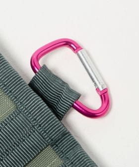 カラビナが付属で、バッグやベルトループへの取り付けが可能。