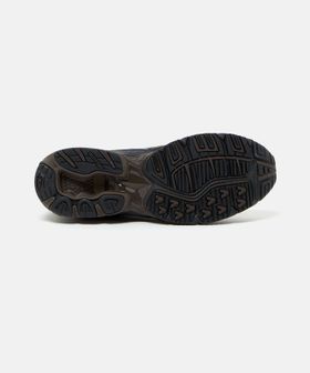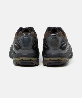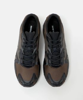 ブラウンのベースにブラックのオーバレイを重ねた一見シンプルな構造のアッパーデザインは、ディテール毎に素材や配色を微調整。