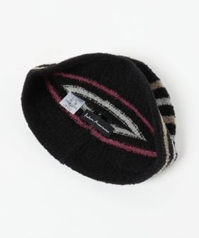 等間隔のボーダーに差し色を配し、被るだけで視線を引きつけるデザイン。