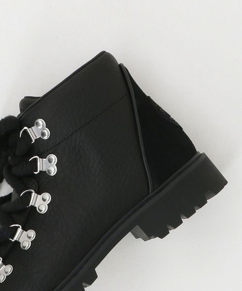 大ぶりの留め具や太めのシューレース、タフなソールが無骨な雰囲気を演出します。
