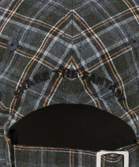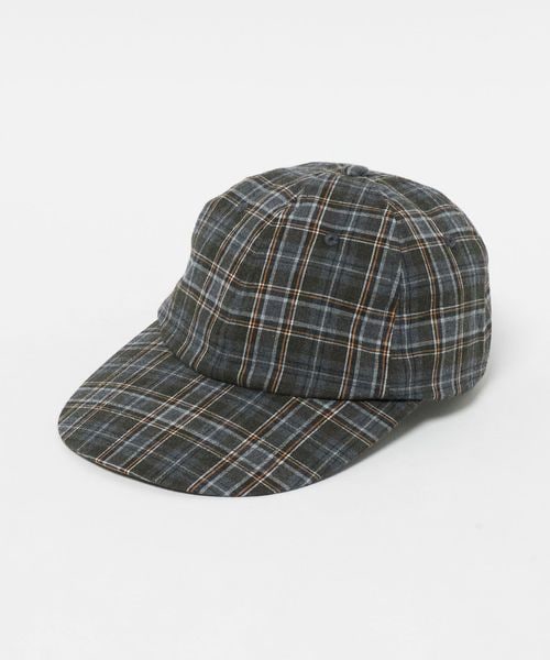 シックな配色のチェック柄生地を使用した別注6パネルキャップ。