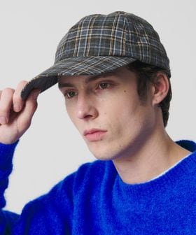 シックな配色のチェック柄生地を使用した別注6パネルキャップ。