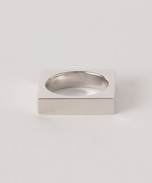 リングの片側にブランドロゴをあしらったミニマルなスクエアリング。