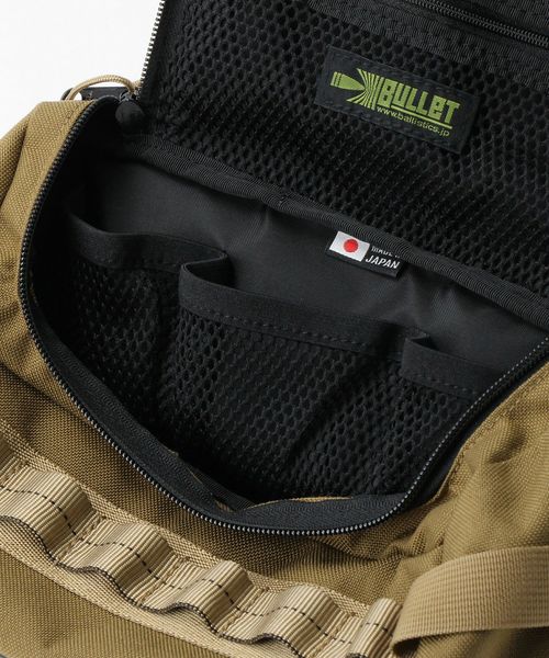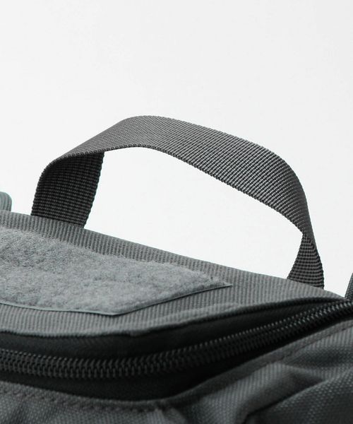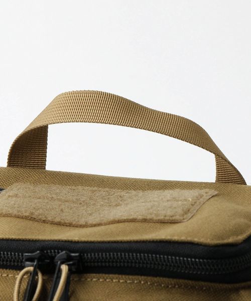 背面上部には持ち運び用のハンドルと、2か所のパラコードループが配置されているのでループにS字カンやカラビナを介してハンガースタンドにぶら下げてご使用いただく事も可能です。