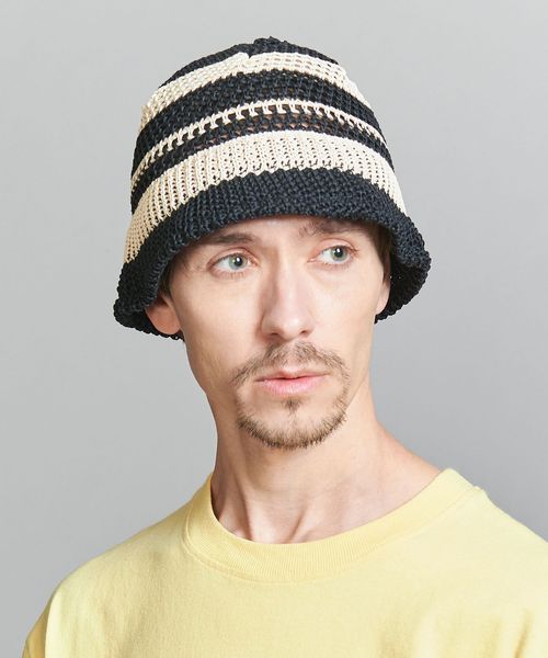 セーラーハットとバケットハットをミックスした独特なフォルムに、ナチュラルなボーダーパターンを配した別注モデル。