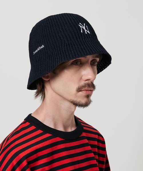 フロントに「NY」ロゴを配した立体感あるニット編みのエクスプローラーハット。