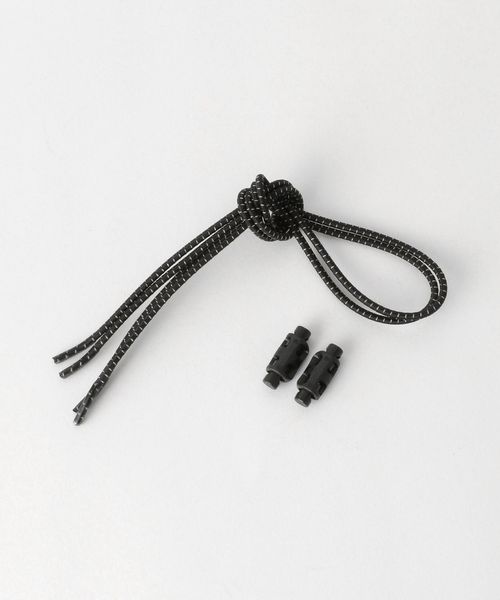 フルブラックとブラックアッパー×オフホワイトソールの2色がラインナップされ、両色ともにスペアシューレースとしてリフレクティブアクセントのコードシューレースとレースロックが付属します。