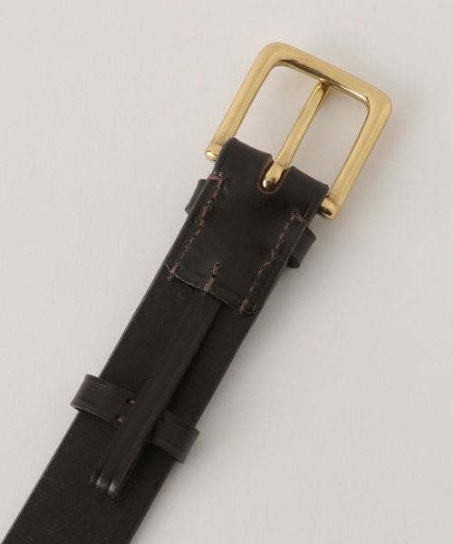 トラッドな風合い漂う、ゴールドカラーバックルが魅力のレザーベルト。