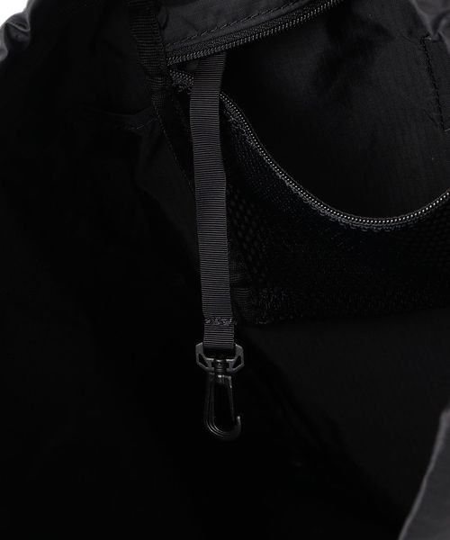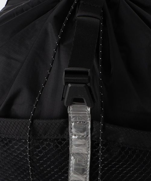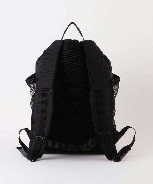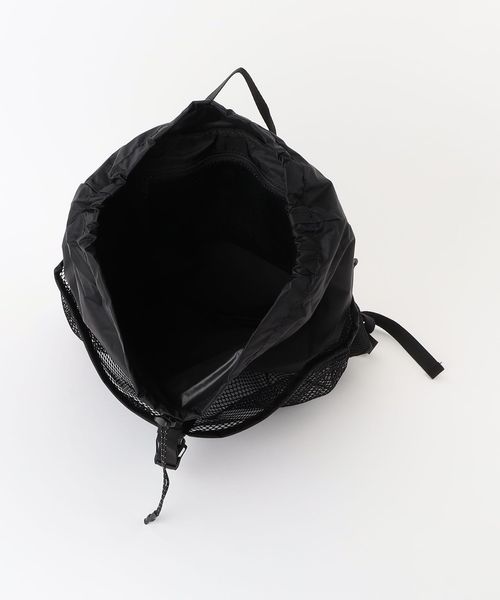 開口部にドローコードを採用し、フロントにメッシュポケット配した素材使いが魅力の一品。