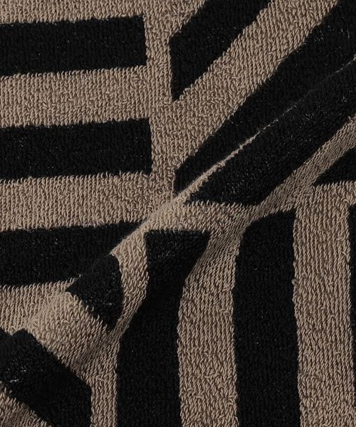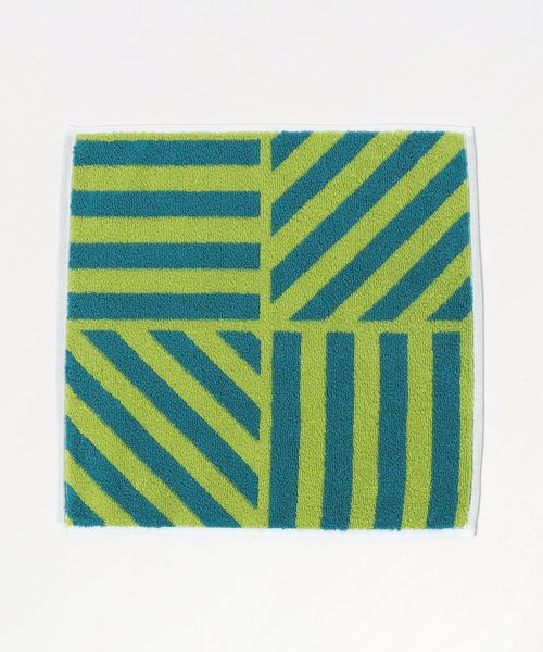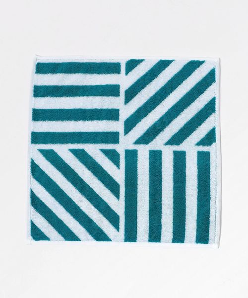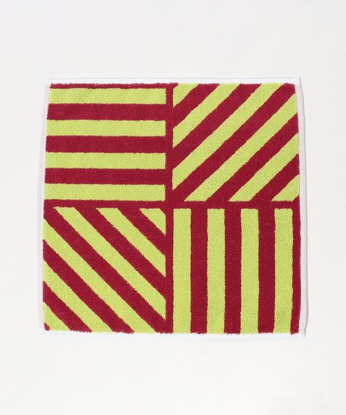 多方面に向いたボーダー柄がアイコニックなタオルハンカチ。