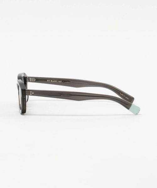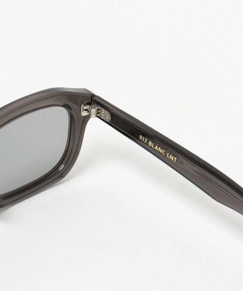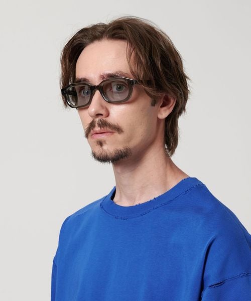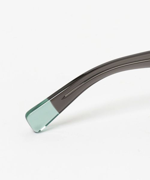 フレームには透明感があり、肌馴染みの良いモノトーンカラーのクリアダークグレーを、テンプルエンドの色には清涼感のあるクリスタルブルーを採用してポップに仕上げた別注モデル。
