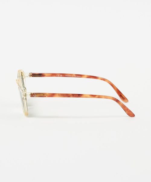 シャンパンカラーのリムと、ブラウン柄のテンプルの組み合わせが目元に存在感を添える印象的なアイウェア。