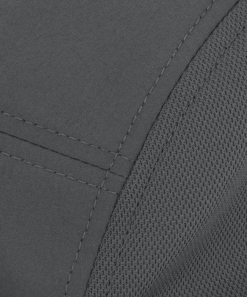 メインパネル(つば、前立て、天井部)と両サイドで異素材を使用することで機能性に富んだデザインに仕上げたジェットキャップ。