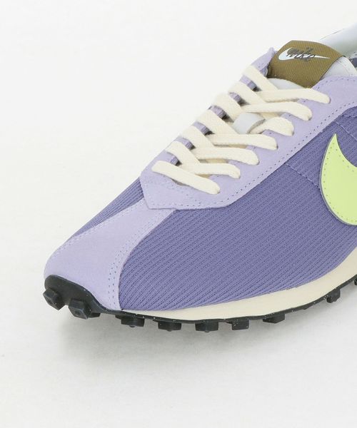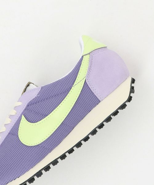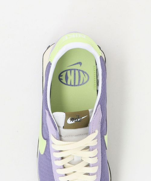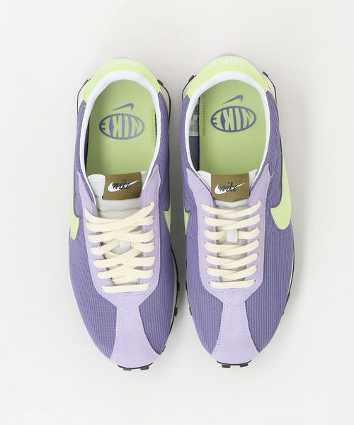 やや褪せたようなパープルのボディに、鮮やかなライムカラーのスウッシュが映えるノスタルジックな配色。
