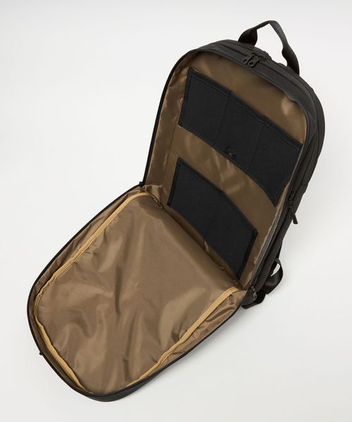●サブコンパートメント/コード類をまとめられるバンドと、小物用ポケットを配置。
