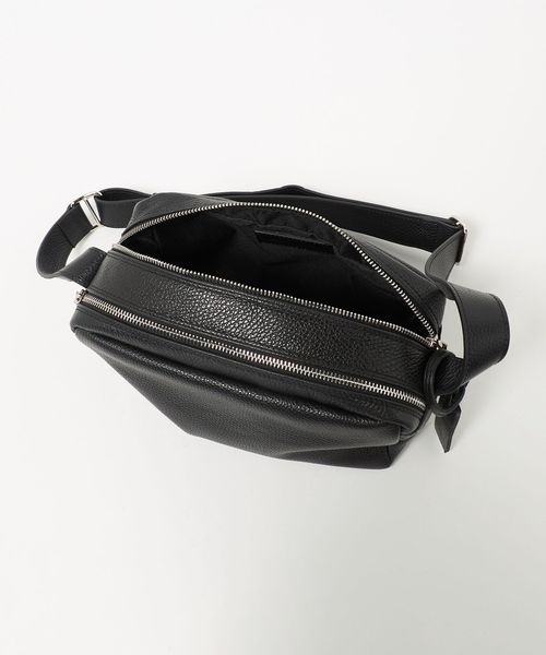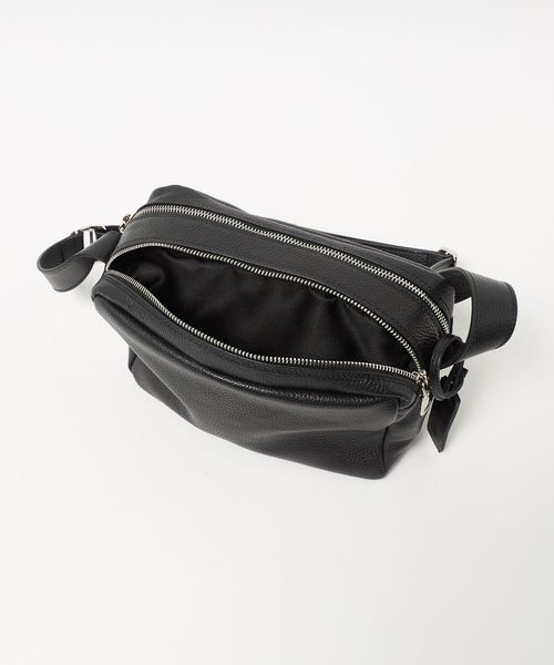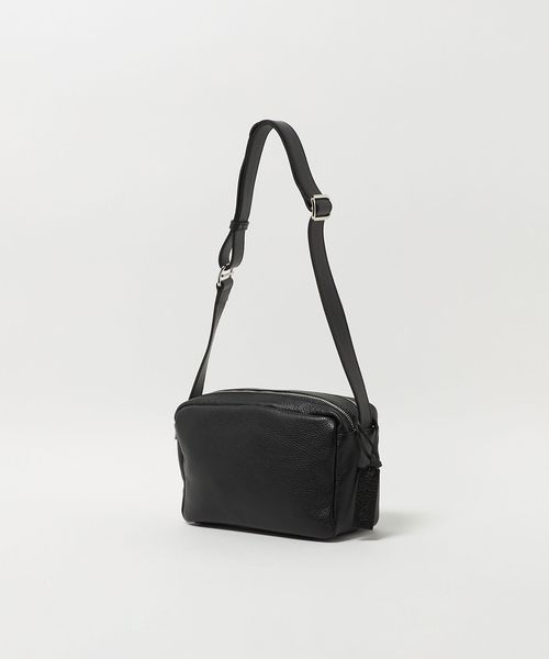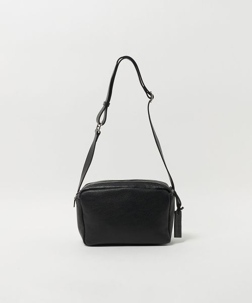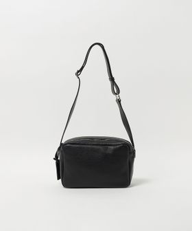 シボ革で仕立てた長方形タイプのショルダーポーチ。