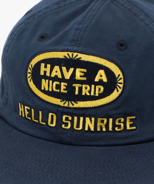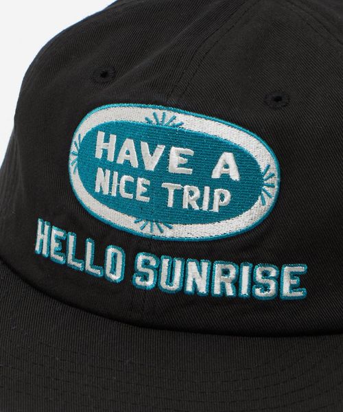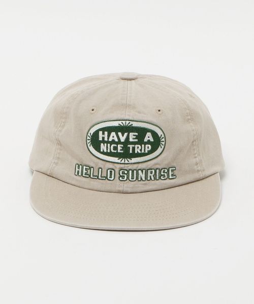 旅をコンセプトに掲げる<HELLO SUNRISE>らしい、「HAVE A NICE TRIP」のロゴをフロントにあしらった6パネルキャップ。