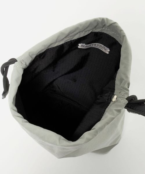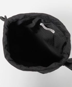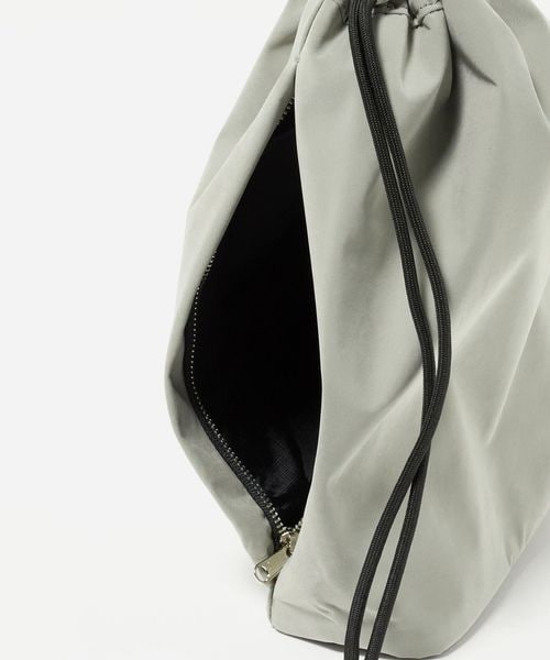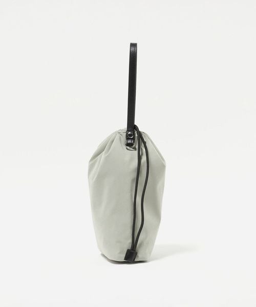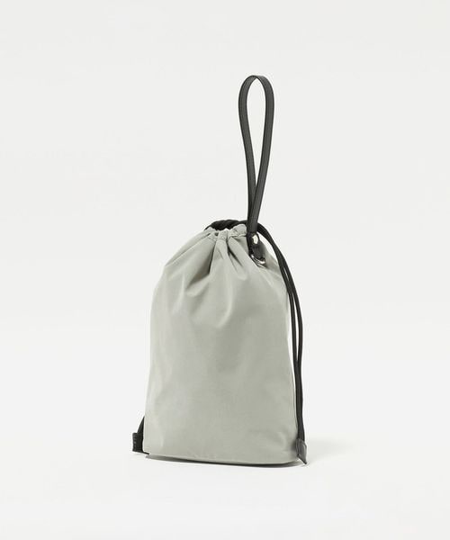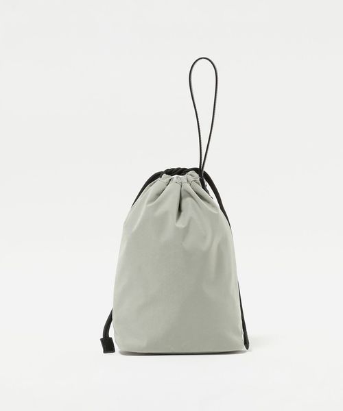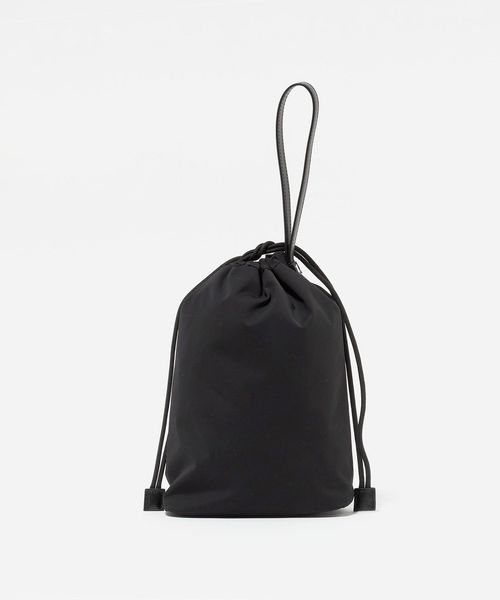 こちらは、ちょっとした外出や旅先でのサブバッグにちょうどいい、ミニマルな佇まいの巾着バッグ。
