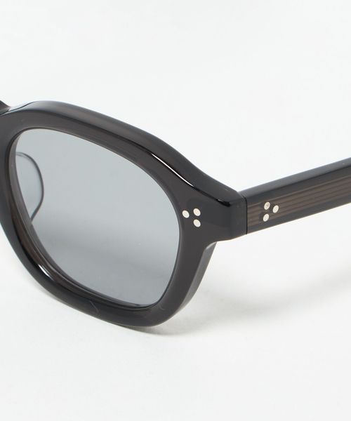 重さを感じさせない表情に、ミディアムグレーのレンズを組み合わせ、全体に一体感のある洗練された印象にまとめています。