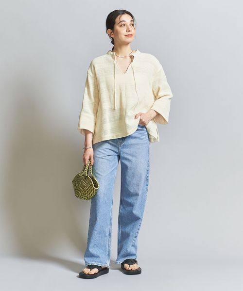 ウエスト周りをすっきりとさせたハイライズに、膝や裾は大きく取ったワイドストレートデニム「THE NIECE(ザ ニース)」。
