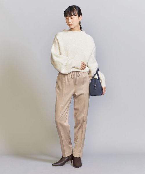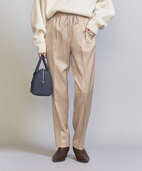 イージーウエストで楽な着心地を叶えながら、すっきりとした適度なテーパードラインに美しいドレープが活きる上品なルックスが魅力です。