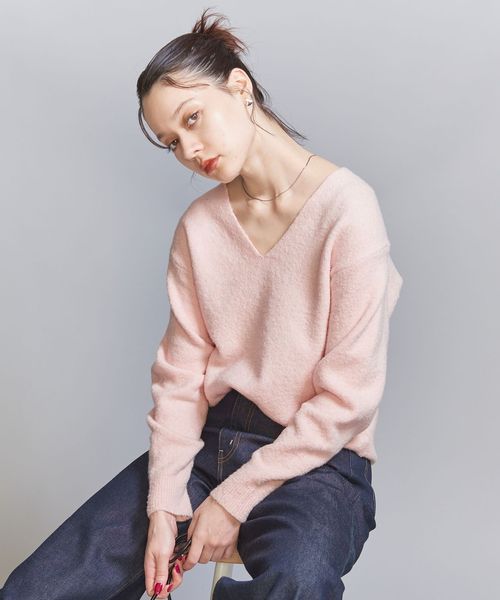 温かみのあるニットの素材感を活かしながら、シャープなVネックですっきりとメリハリをつけた一着。